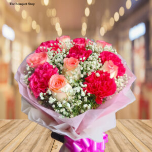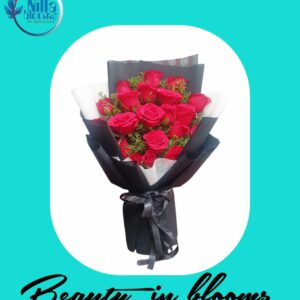 Colorful Flowers with Black and White Color Wrapping Bouquet
