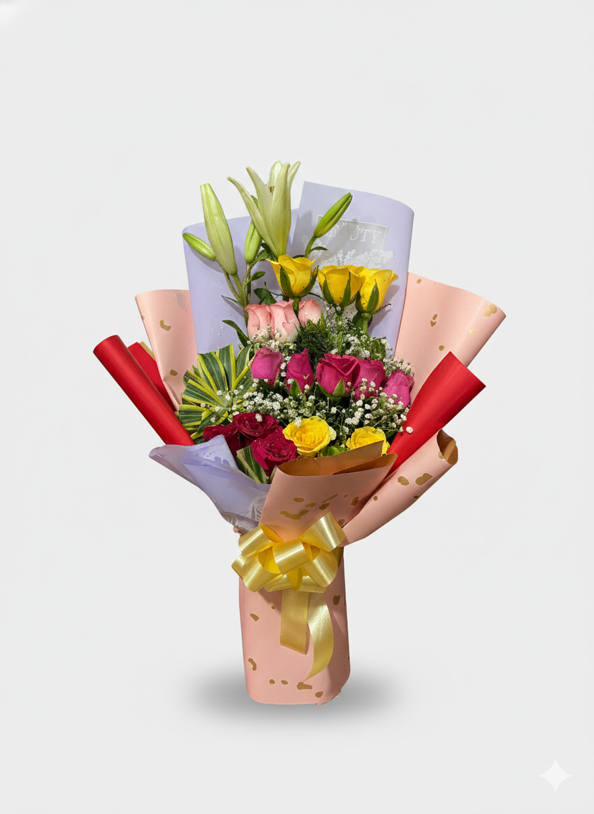 • 🎀 Style: Handcrafted mixed floral bouquet