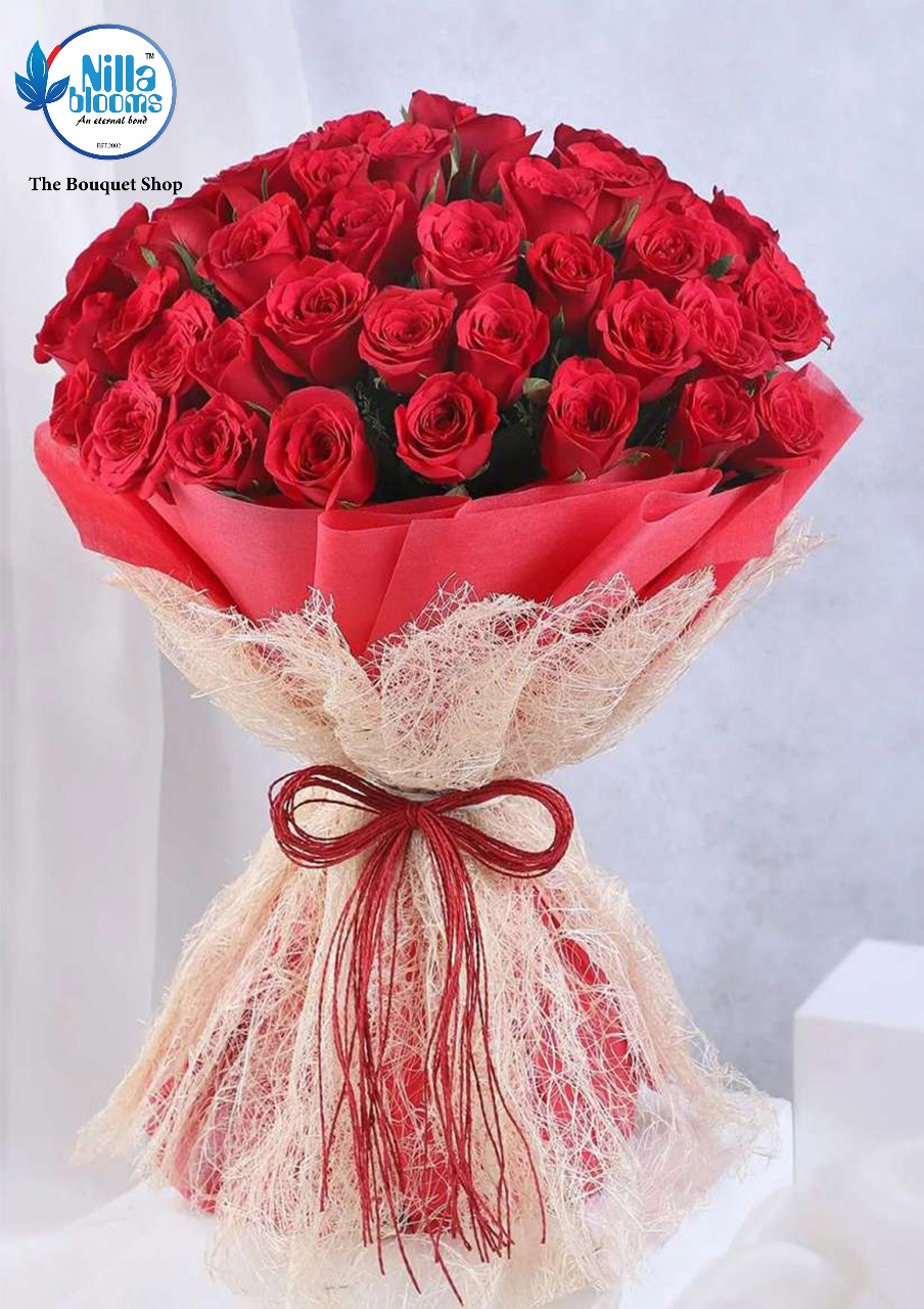 - Beautiful Red Roses flowers with greent leaf bunch and Double Layer color Sheet Wrapping for your someone special and special occasion