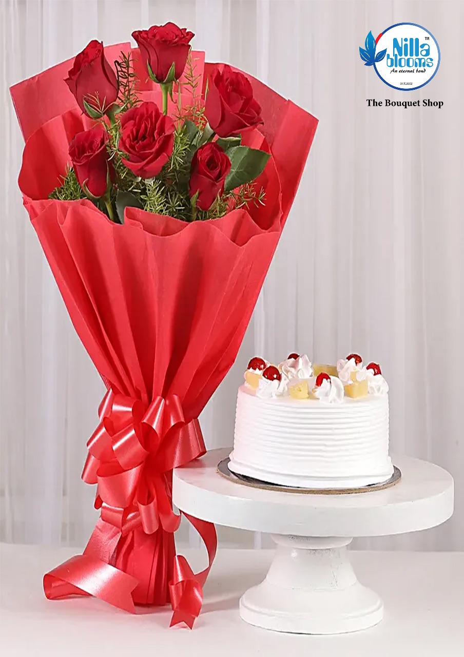 - Beautiful Red Rose flowers with Red color Sheet Wrapping with Combo of Cake for your someone special and special occasion