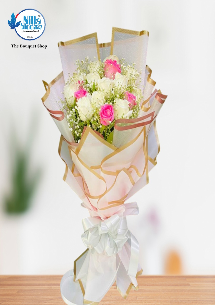 - Beautiful White and Pink Rose flowers with Korean Sheet Wrapping for your someone special and special occasion